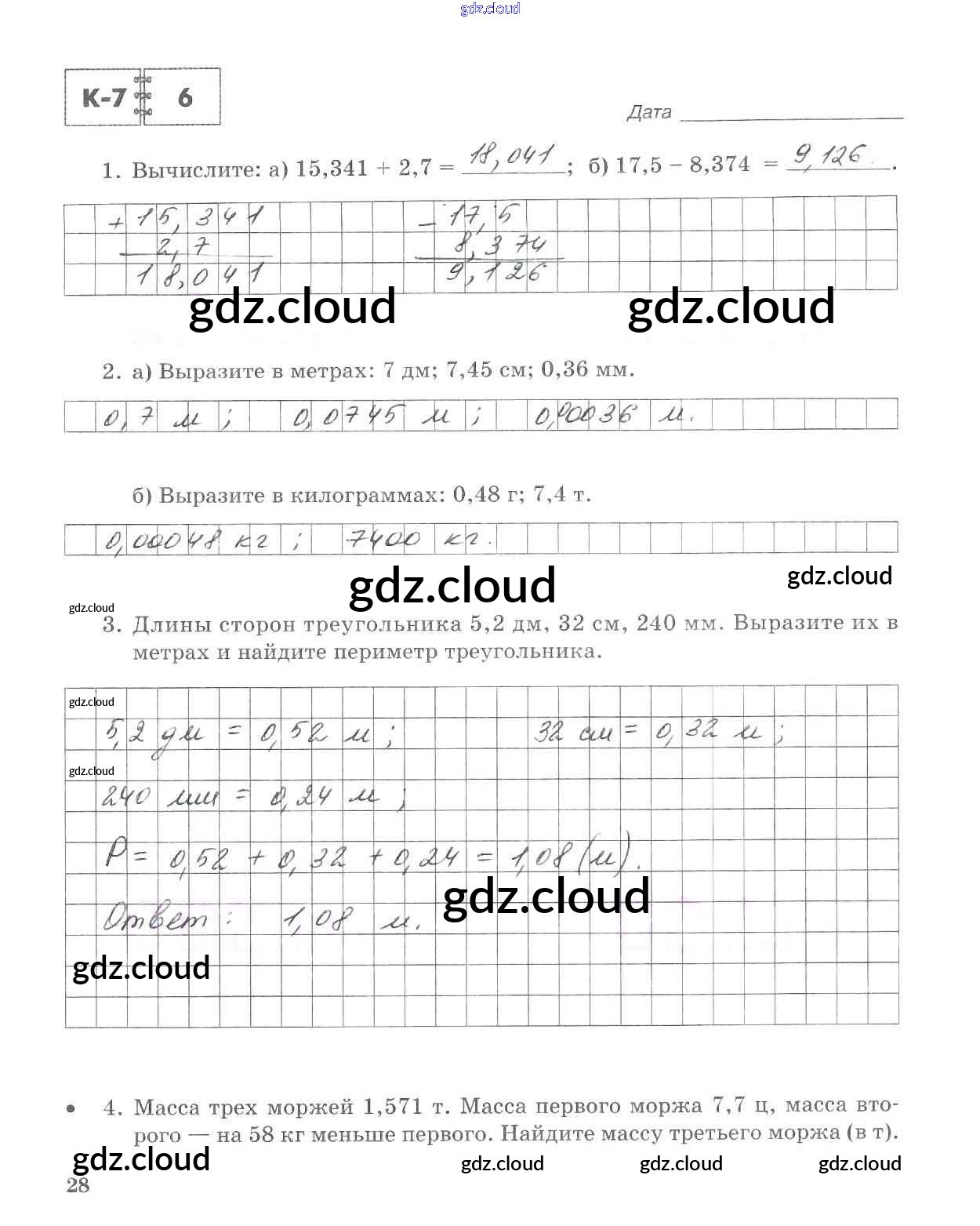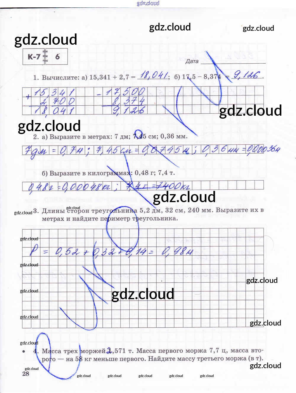 Ответ на задание стр.28 Тетрадь для контрольных работ Математика за 5 (пятый) класс Зубарева, Лепешонкова 2018 Часть 1, 2