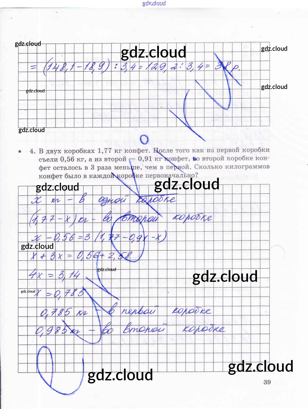 Ответ на задание стр.39 Тетрадь для контрольных работ Математика за 5 (пятый) класс Зубарева, Лепешонкова 2018 Часть 1, 2