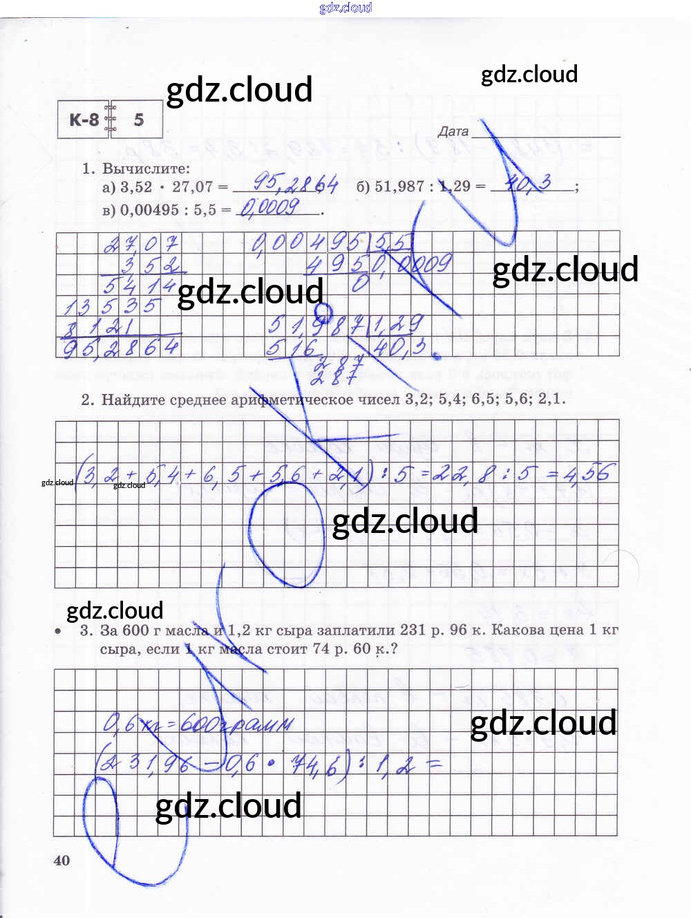 Ответ на задание стр.40 Тетрадь для контрольных работ Математика за 5 (пятый) класс Зубарева, Лепешонкова 2018 Часть 1, 2