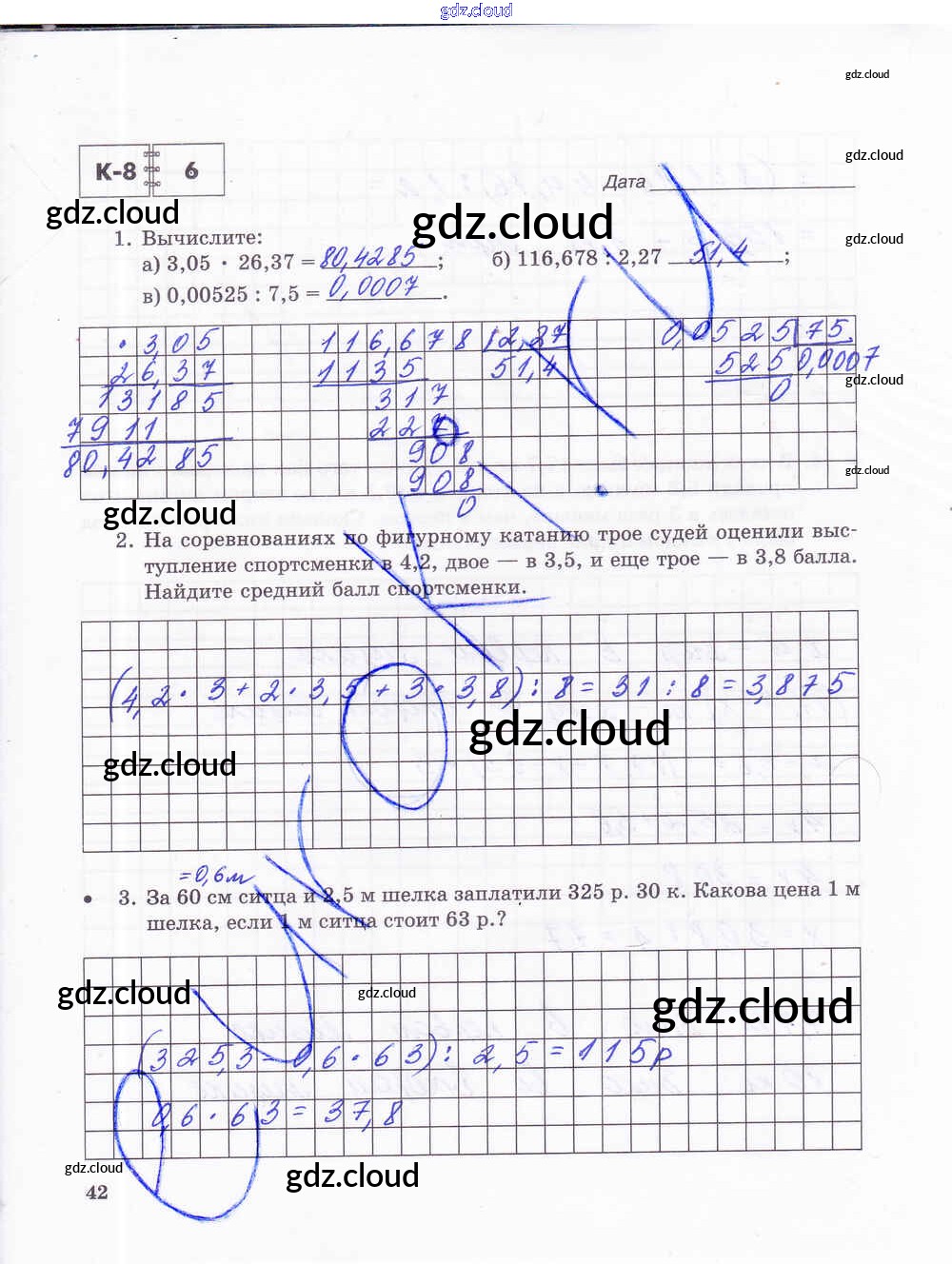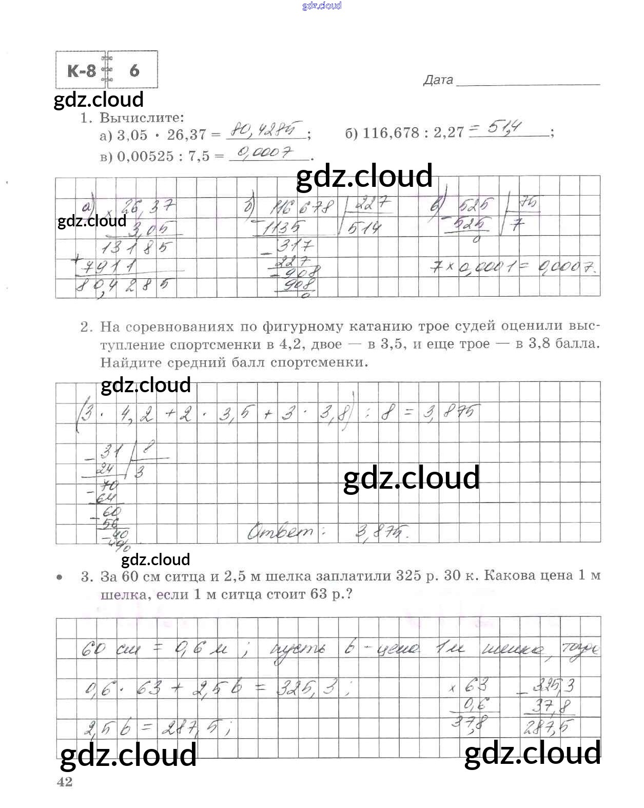 Ответ на задание стр.42 Тетрадь для контрольных работ Математика за 5 (пятый) класс Зубарева, Лепешонкова 2018 Часть 1, 2