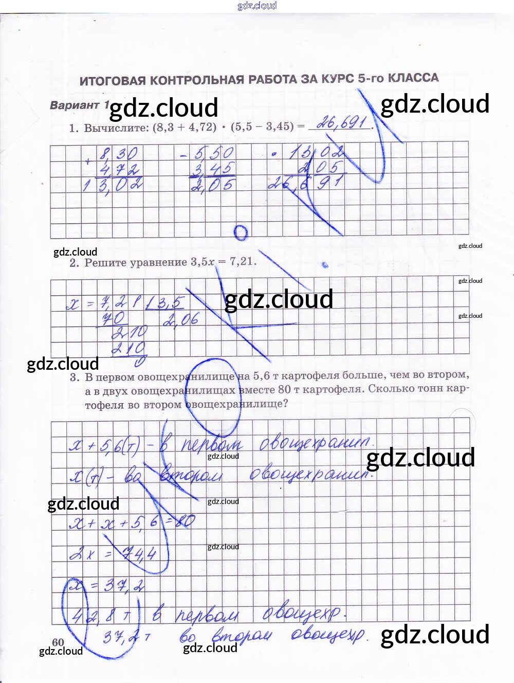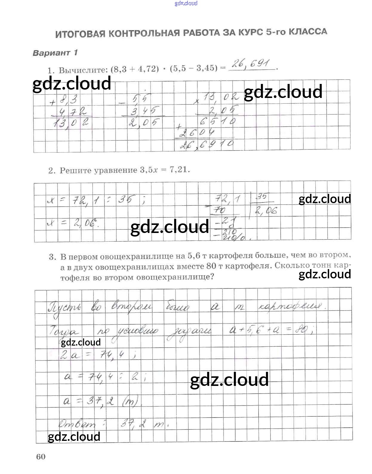 Ответ на задание стр.60 Тетрадь для контрольных работ Математика за 5 (пятый) класс Зубарева, Лепешонкова 2018 Часть 1, 2