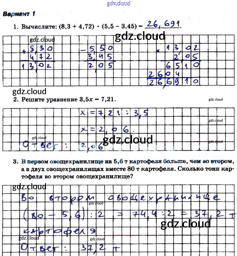 Ответы к Части 2 по Математике 5 класс Тетрадь для контрольных работ Зубарева Часть 1, 2 Мнемозина