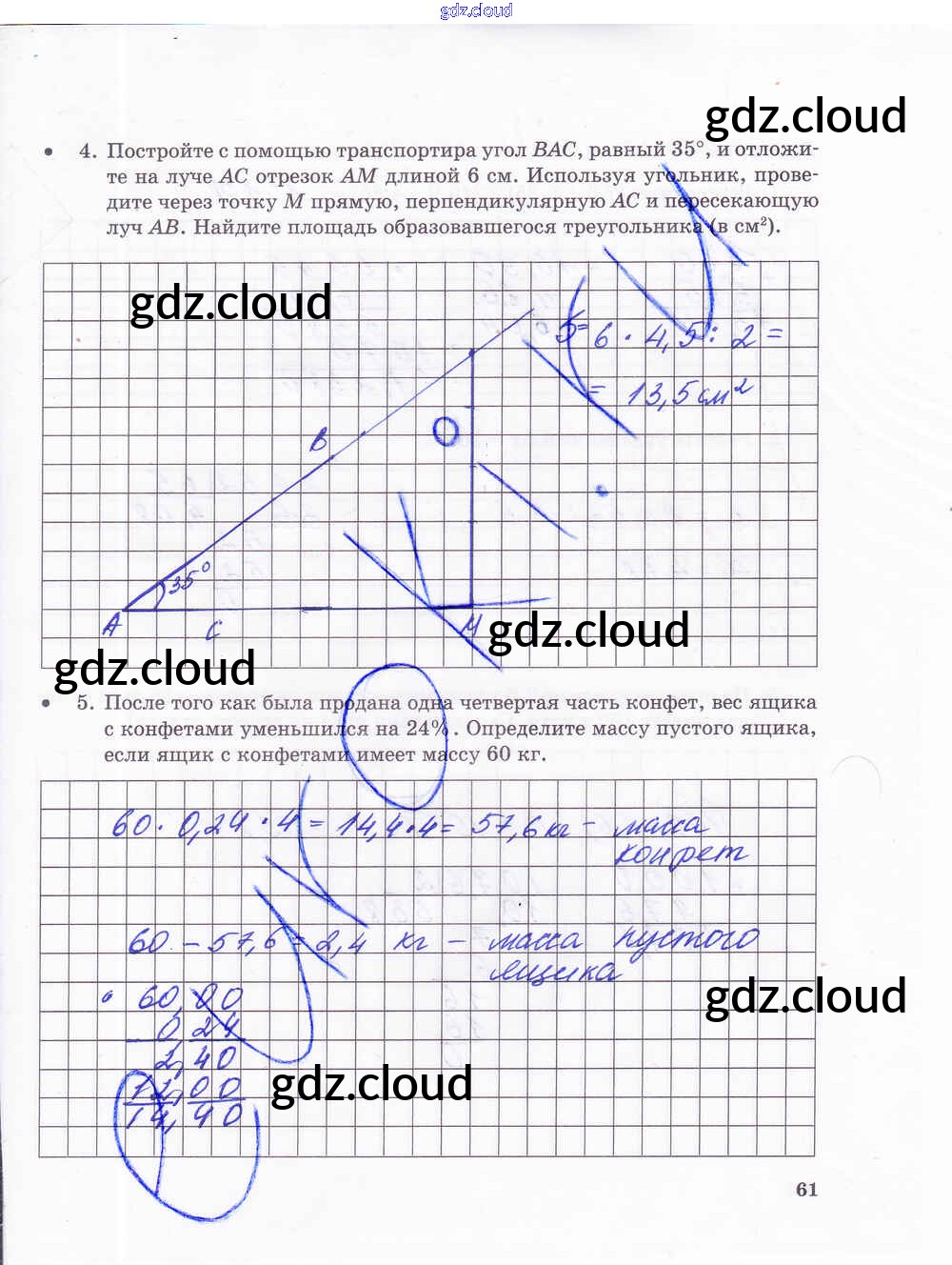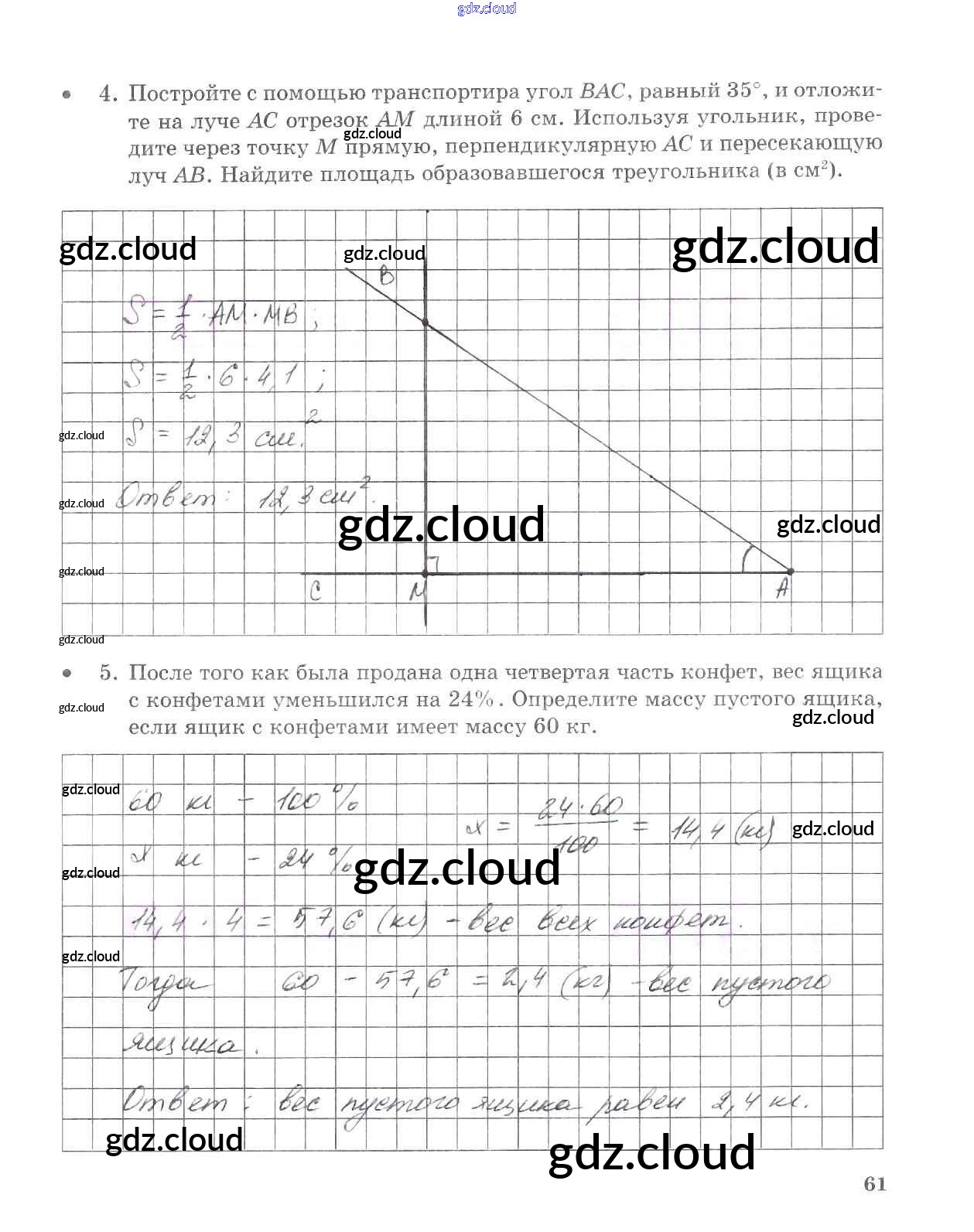 Ответ на задание стр.61 Тетрадь для контрольных работ Математика за 5 (пятый) класс Зубарева, Лепешонкова 2018 Часть 1, 2