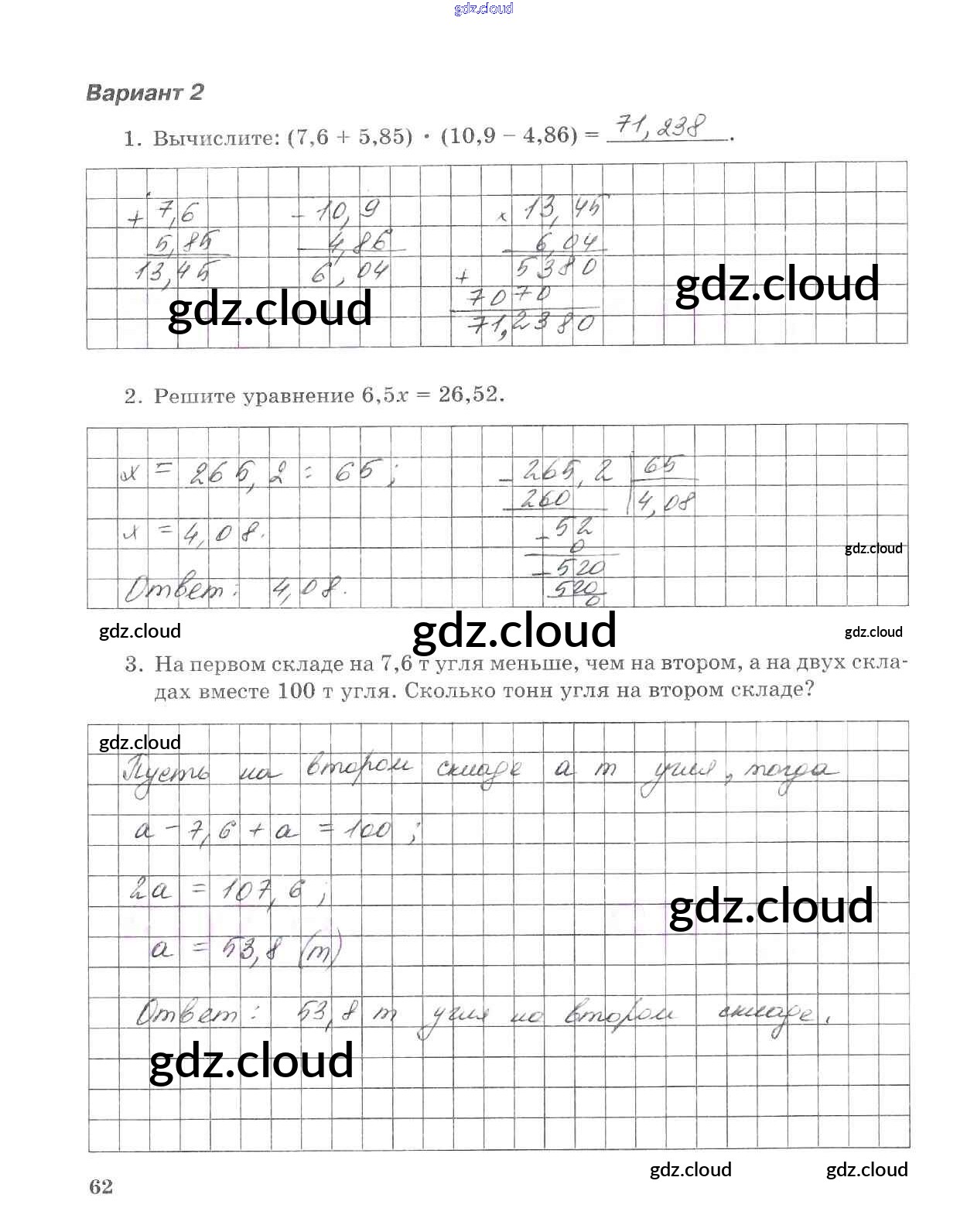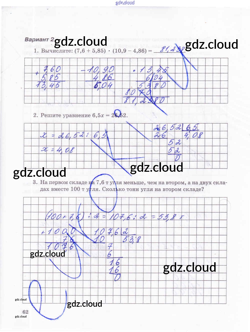 Ответ на задание стр.62 Тетрадь для контрольных работ Математика за 5 (пятый) класс Зубарева, Лепешонкова 2018 Часть 1, 2
