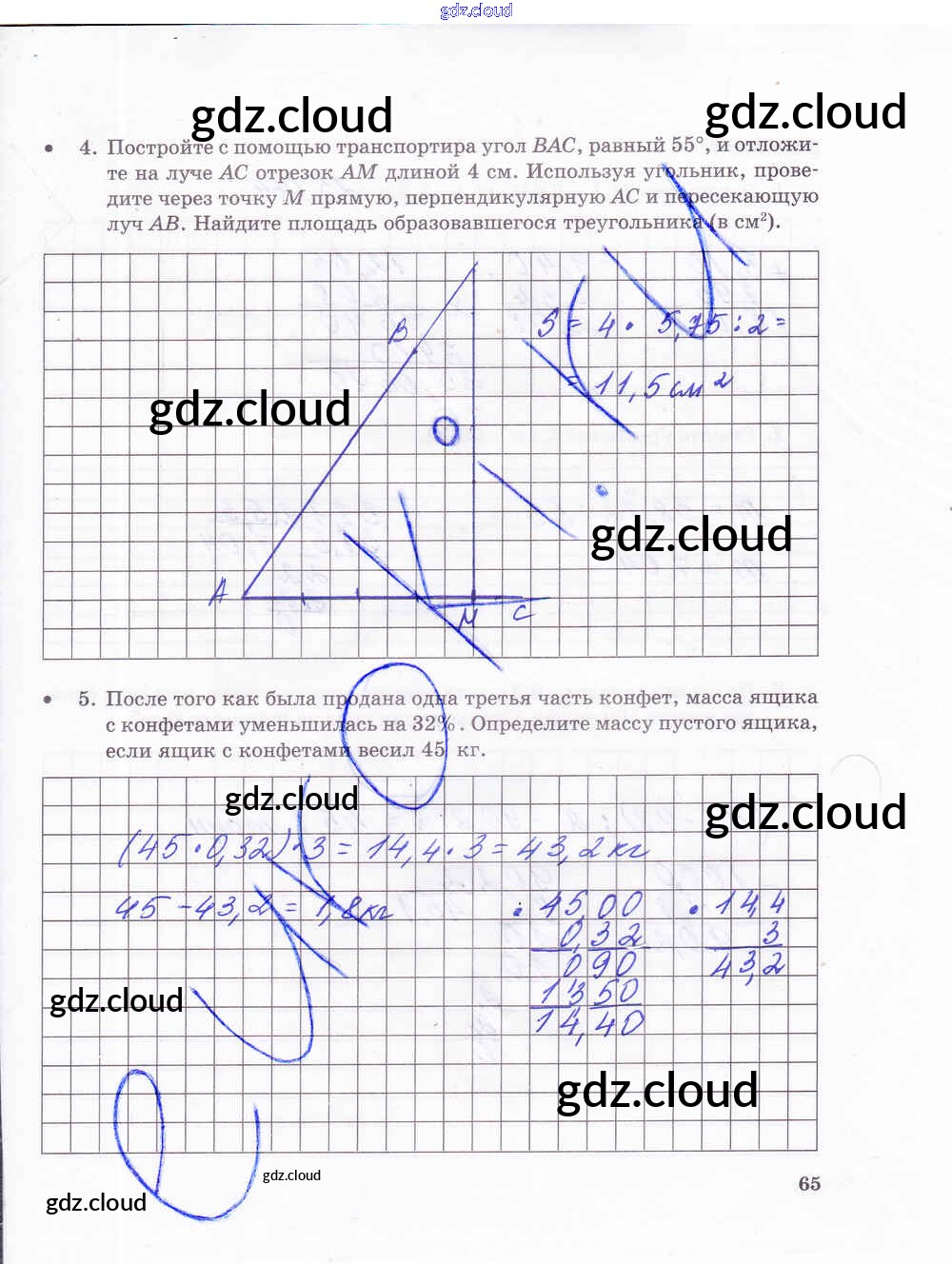 Ответ на задание стр.65 Тетрадь для контрольных работ Математика за 5 (пятый) класс Зубарева, Лепешонкова 2018 Часть 1, 2