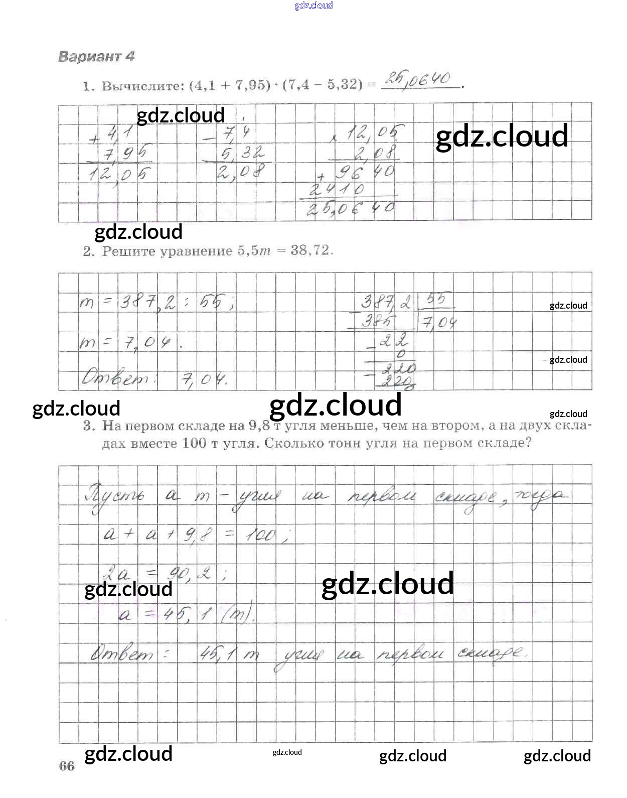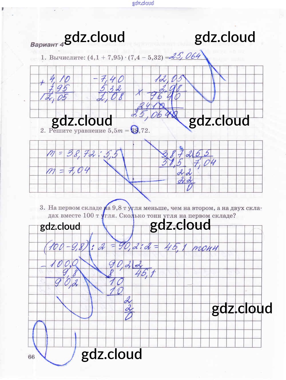Ответ на задание стр.66 Тетрадь для контрольных работ Математика за 5 (пятый) класс Зубарева, Лепешонкова 2018 Часть 1, 2