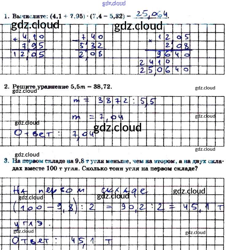 Ответы к Части 2 по Математике 5 класс Тетрадь для контрольных работ Зубарева Часть 1, 2 Мнемозина
