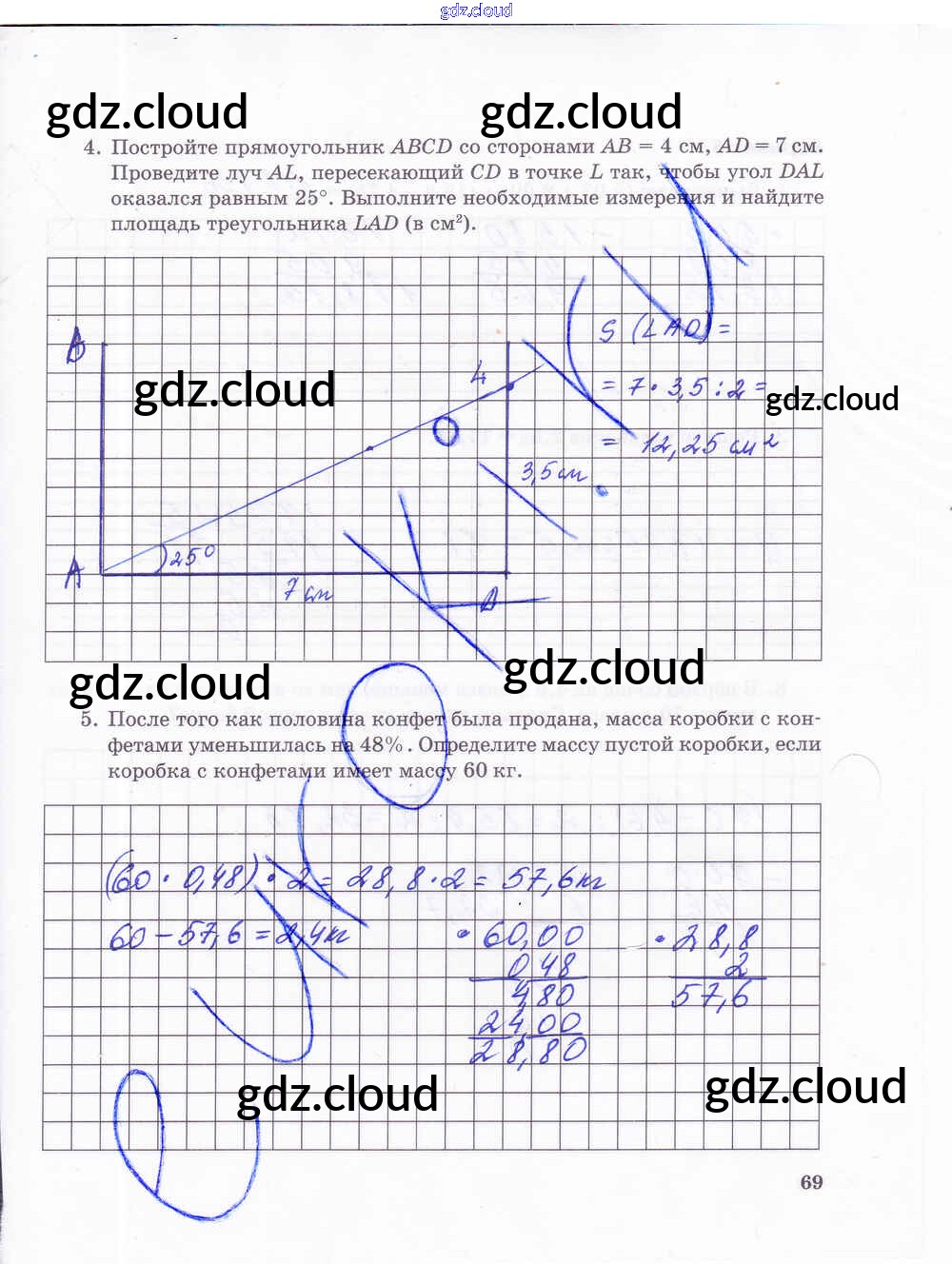 Ответ на задание стр.69 Тетрадь для контрольных работ Математика за 5 (пятый) класс Зубарева, Лепешонкова 2018 Часть 1, 2