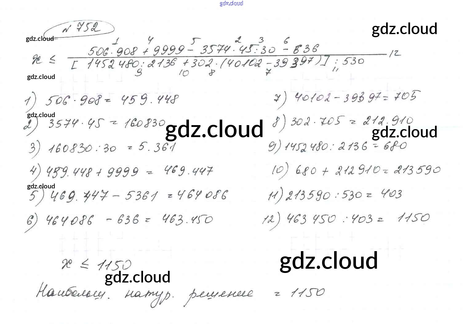 Ответ на задание 752 Учебник Математика за 5 (пятый) класс Петерсон, Дорофеев 2014 Часть 1, 2