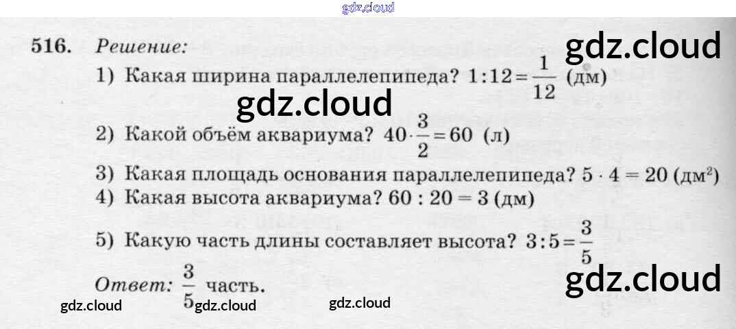Ответ на задание 516 Учебник Математика за 5 (пятый) класс Петерсон, Дорофеев 2014 Часть 1, 2