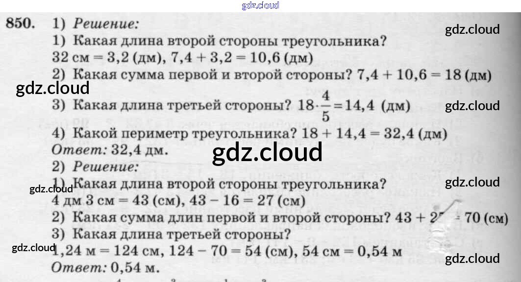 Ответ на задание 850 Учебник Математика за 5 (пятый) класс Петерсон, Дорофеев 2014 Часть 1, 2