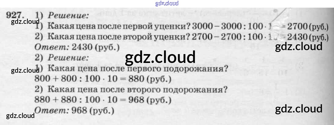 Ответ на задание 927 Учебник Математика за 5 (пятый) класс Петерсон, Дорофеев 2014 Часть 1, 2