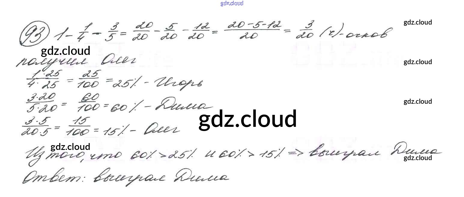 Ответ на задание 93 Учебник Математика за 5 (пятый) класс Петерсон, Дорофеев 2014 Часть 1, 2 ФГОС онлайн и без номера телефона.