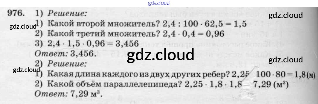 Ответ на задание 976 Учебник Математика за 5 (пятый) класс Петерсон, Дорофеев 2014 Часть 1, 2
