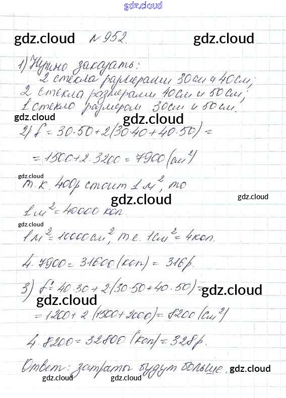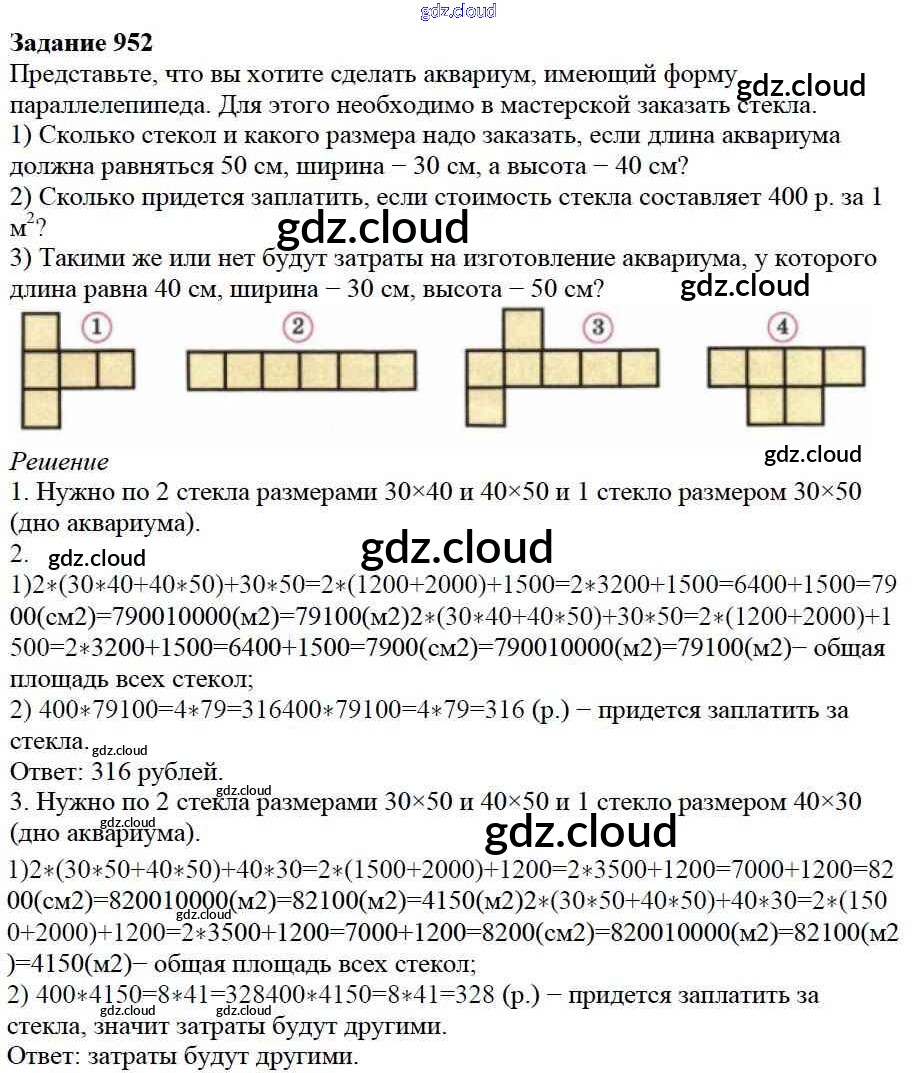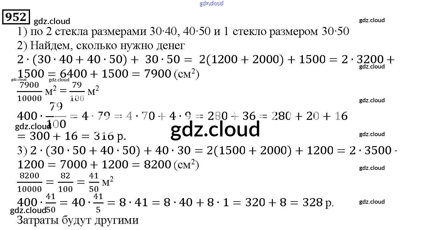Ответ на задание 952 Учебник Математика за 5 (пятый) класс Дорофеев, Шарыгин, Суворова, Бунимович, Кузнецова, Минаева, Рослова 2015