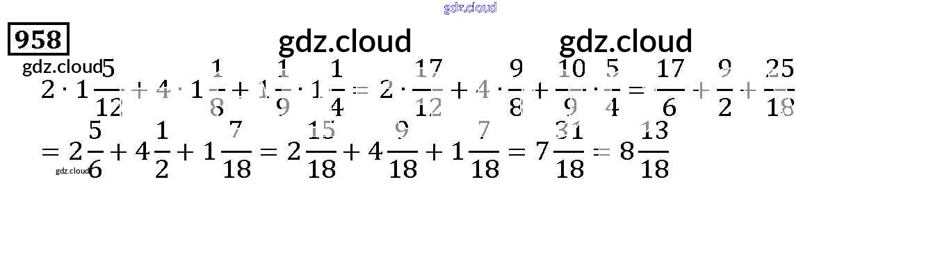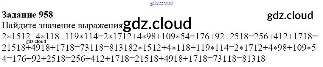 Ответ на задание 958 Учебник Математика за 5 (пятый) класс Дорофеев, Шарыгин, Суворова, Бунимович, Кузнецова, Минаева, Рослова 2015