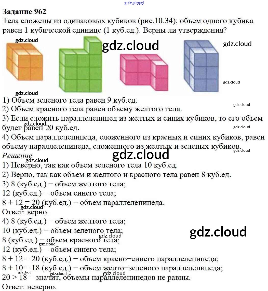 Ответ на задание 962 Учебник Математика за 5 (пятый) класс Дорофеев, Шарыгин, Суворова, Бунимович, Кузнецова, Минаева, Рослова 2015
