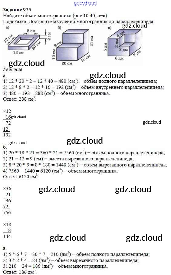 Ответ на задание 975 Учебник Математика за 5 (пятый) класс Дорофеев, Шарыгин, Суворова, Бунимович, Кузнецова, Минаева, Рослова 2015