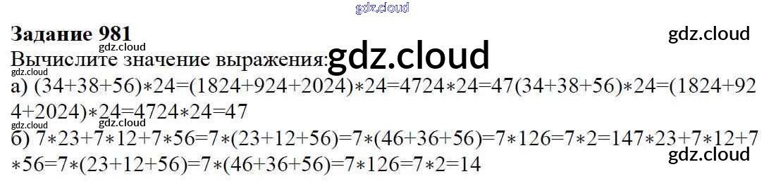 Ответ на задание 981 Учебник Математика за 5 (пятый) класс Дорофеев, Шарыгин, Суворова, Бунимович, Кузнецова, Минаева, Рослова 2015