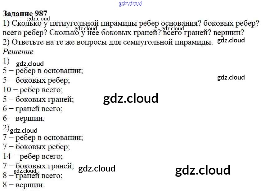 Ответ на задание 987 Учебник Математика за 5 (пятый) класс Дорофеев, Шарыгин, Суворова, Бунимович, Кузнецова, Минаева, Рослова 2015