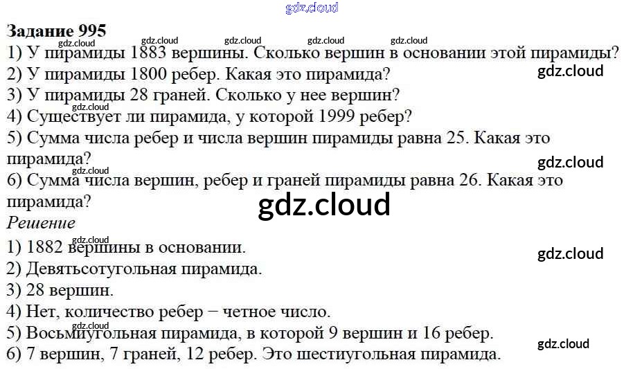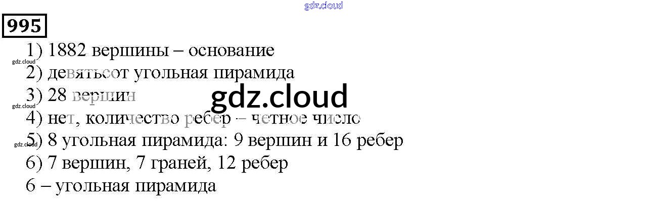 Ответ на задание 995 Учебник Математика за 5 (пятый) класс Дорофеев, Шарыгин, Суворова, Бунимович, Кузнецова, Минаева, Рослова 2015