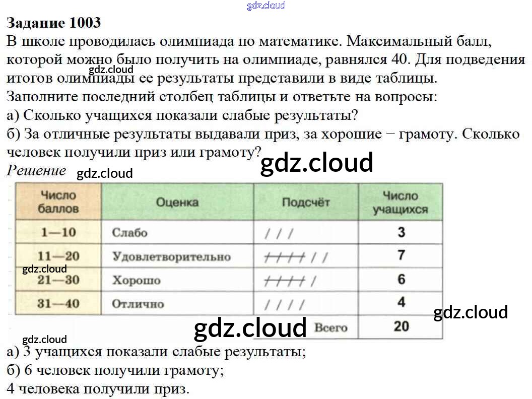 Ответ на задание 1003 Учебник Математика за 5 (пятый) класс Дорофеев, Шарыгин, Суворова, Бунимович, Кузнецова, Минаева, Рослова 2015