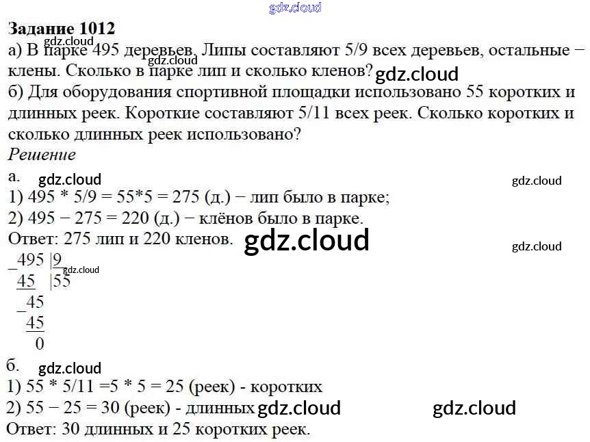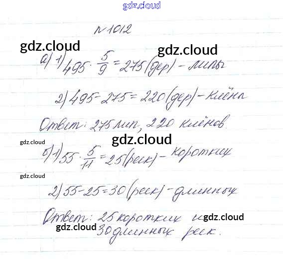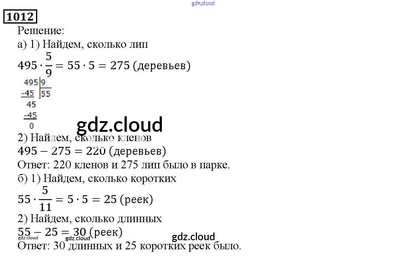 Ответ на задание 1012 Учебник Математика за 5 (пятый) класс Дорофеев, Шарыгин, Суворова, Бунимович, Кузнецова, Минаева, Рослова 2015