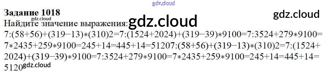 Ответ на задание 1018 Учебник Математика за 5 (пятый) класс Дорофеев, Шарыгин, Суворова, Бунимович, Кузнецова, Минаева, Рослова 2015