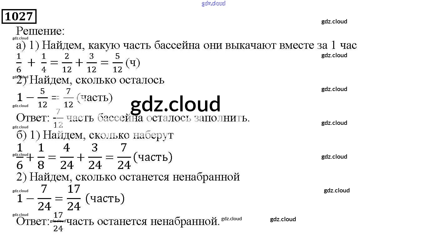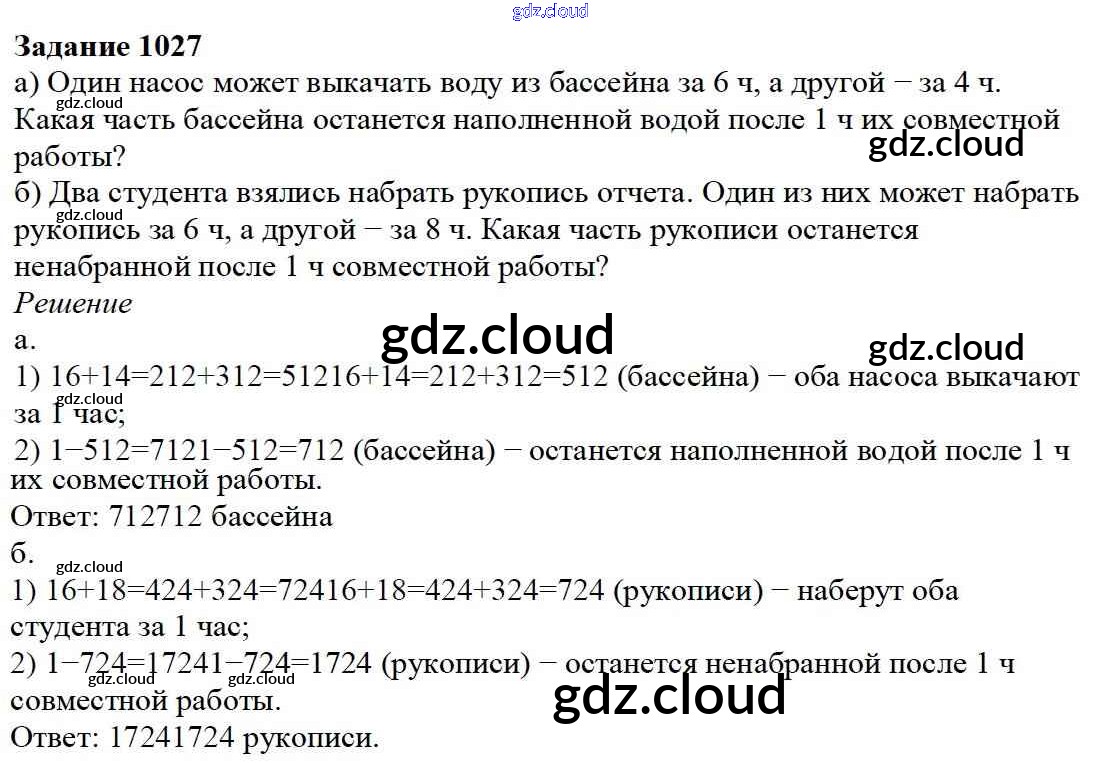Ответ на задание 1027 Учебник Математика за 5 (пятый) класс Дорофеев, Шарыгин, Суворова, Бунимович, Кузнецова, Минаева, Рослова 2015