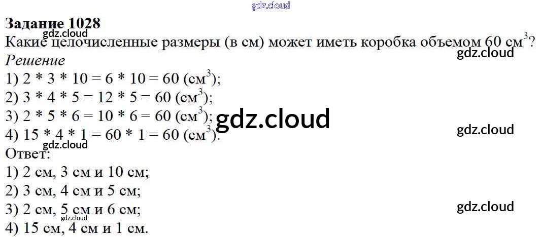 Ответ на задание 1028 Учебник Математика за 5 (пятый) класс Дорофеев, Шарыгин, Суворова, Бунимович, Кузнецова, Минаева, Рослова 2015