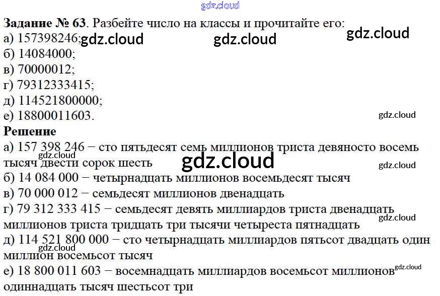 Ответ на задание 63 Учебник Математика за 5 (пятый) класс Дорофеев, Шарыгин, Суворова, Бунимович, Кузнецова, Минаева, Рослова 2015