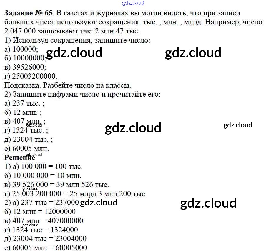 Ответ на задание 65 Учебник Математика за 5 (пятый) класс Дорофеев, Шарыгин, Суворова, Бунимович, Кузнецова, Минаева, Рослова 2015