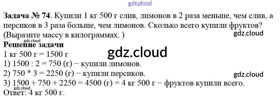 Ответ на задание 74 Учебник Математика за 5 (пятый) класс Дорофеев, Шарыгин, Суворова, Бунимович, Кузнецова, Минаева, Рослова 2015