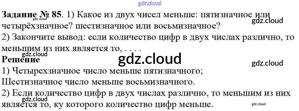 Ответ на задание 85 Учебник Математика за 5 (пятый) класс Дорофеев, Шарыгин, Суворова, Бунимович, Кузнецова, Минаева, Рослова 2015