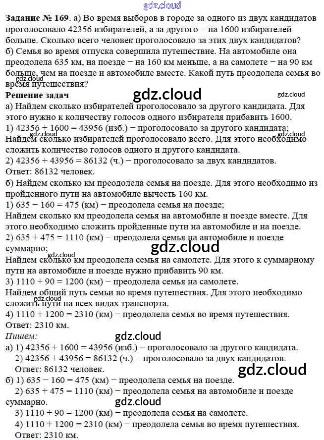 Ответ на задание 169 Учебник Математика за 5 (пятый) класс Дорофеев, Шарыгин, Суворова, Бунимович, Кузнецова, Минаева, Рослова 2015