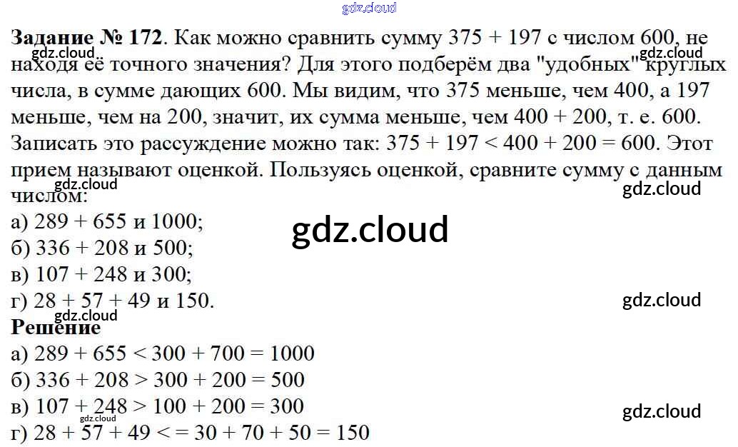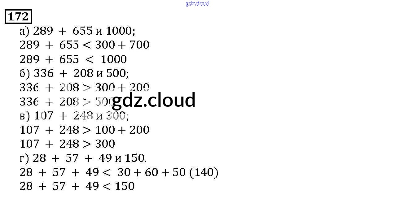 Ответ на задание 172 Учебник Математика за 5 (пятый) класс Дорофеев, Шарыгин, Суворова, Бунимович, Кузнецова, Минаева, Рослова 2015