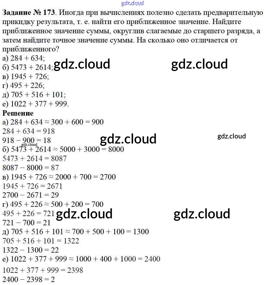 Ответ на задание 173 Учебник Математика за 5 (пятый) класс Дорофеев, Шарыгин, Суворова, Бунимович, Кузнецова, Минаева, Рослова 2015