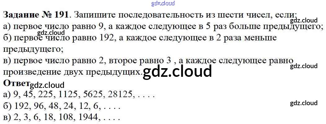 Ответ на задание 191 Учебник Математика за 5 (пятый) класс Дорофеев, Шарыгин, Суворова, Бунимович, Кузнецова, Минаева, Рослова 2015