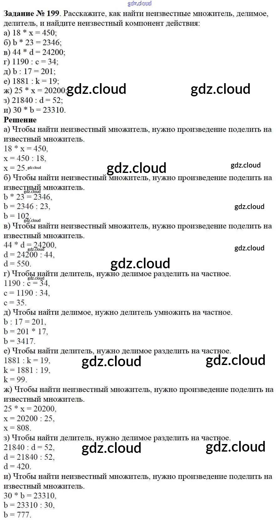 Ответ на задание 199 Учебник Математика за 5 (пятый) класс Дорофеев, Шарыгин, Суворова, Бунимович, Кузнецова, Минаева, Рослова 2015