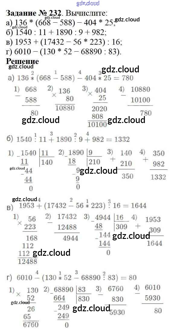 Ответ на задание 232 Учебник Математика за 5 (пятый) класс Дорофеев, Шарыгин, Суворова, Бунимович, Кузнецова, Минаева, Рослова 2015