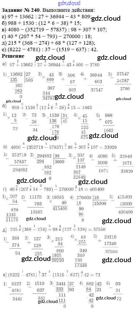 Ответ на задание 240 Учебник Математика за 5 (пятый) класс Дорофеев, Шарыгин, Суворова, Бунимович, Кузнецова, Минаева, Рослова 2015