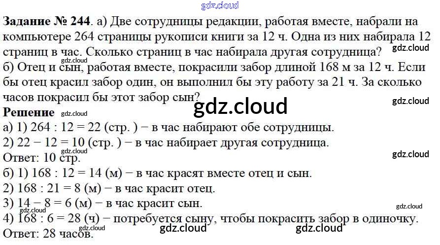 Ответ на задание 244 Учебник Математика за 5 (пятый) класс Дорофеев, Шарыгин, Суворова, Бунимович, Кузнецова, Минаева, Рослова 2015