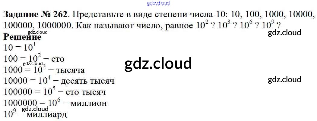 Ответ на задание 262 Учебник Математика за 5 (пятый) класс Дорофеев, Шарыгин, Суворова, Бунимович, Кузнецова, Минаева, Рослова 2015