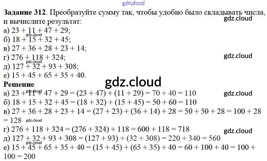 Ответ на задание 312 Учебник Математика за 5 (пятый) класс Дорофеев, Шарыгин, Суворова, Бунимович, Кузнецова, Минаева, Рослова 2015