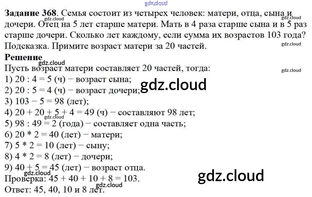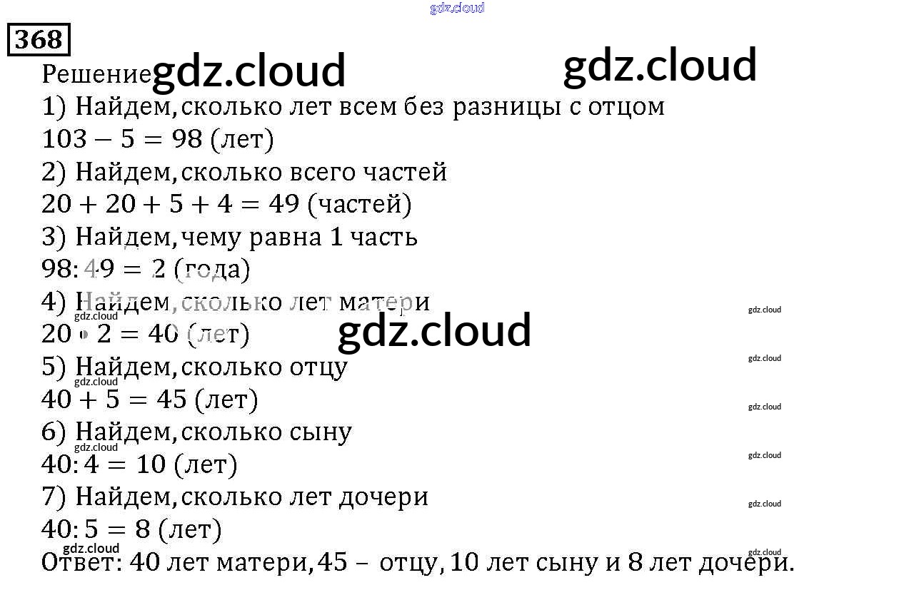 Ответ на задание 368 Учебник Математика за 5 (пятый) класс Дорофеев, Шарыгин, Суворова, Бунимович, Кузнецова, Минаева, Рослова 2015