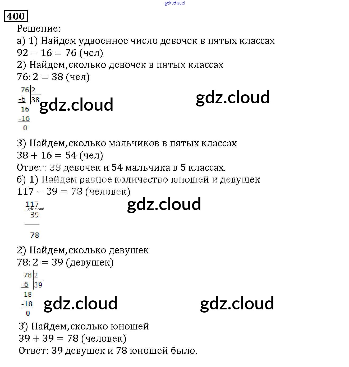 Ответ на задание 400 Учебник Математика за 5 (пятый) класс Дорофеев, Шарыгин, Суворова, Бунимович, Кузнецова, Минаева, Рослова 2015