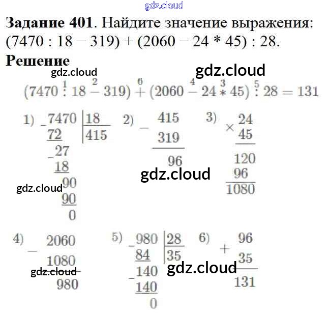 Ответ на задание 401 Учебник Математика за 5 (пятый) класс Дорофеев, Шарыгин, Суворова, Бунимович, Кузнецова, Минаева, Рослова 2015