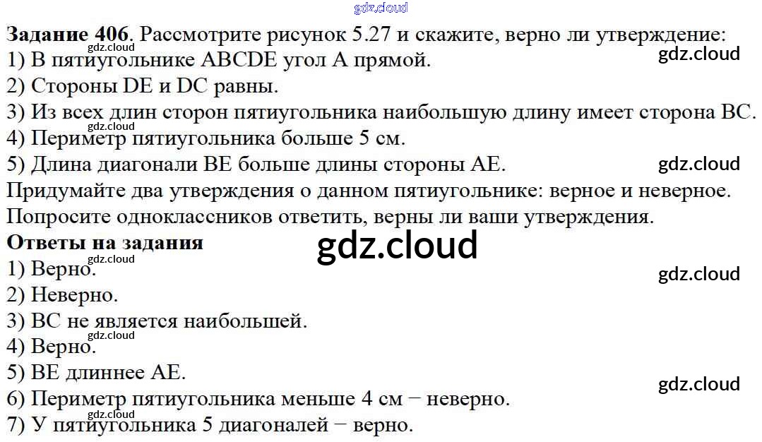Ответ на задание 406 Учебник Математика за 5 (пятый) класс Дорофеев, Шарыгин, Суворова, Бунимович, Кузнецова, Минаева, Рослова 2015