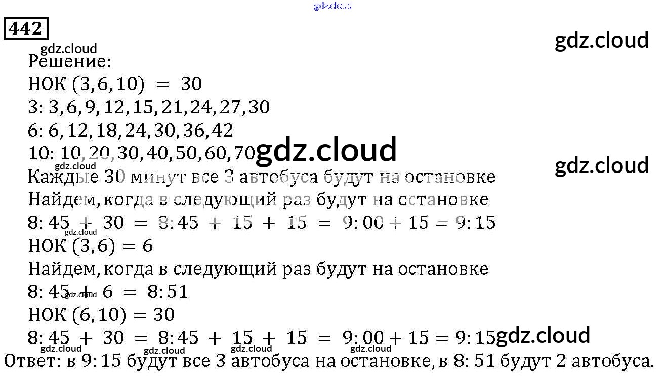 Ответ на задание 442 Учебник Математика за 5 (пятый) класс Дорофеев, Шарыгин, Суворова, Бунимович, Кузнецова, Минаева, Рослова 2015