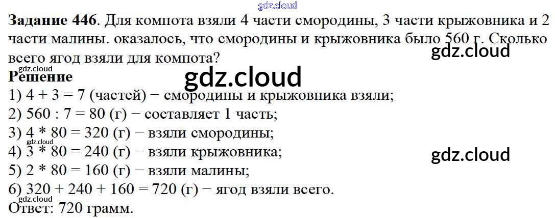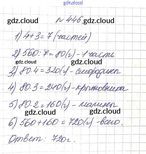 Ответ на задание 446 Учебник Математика за 5 (пятый) класс Дорофеев, Шарыгин, Суворова, Бунимович, Кузнецова, Минаева, Рослова 2015